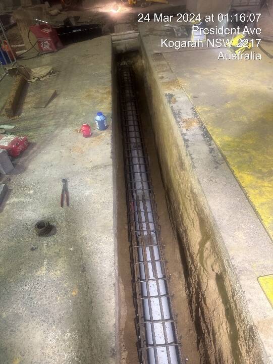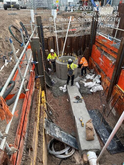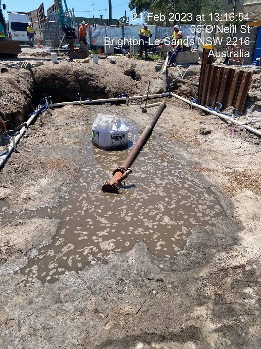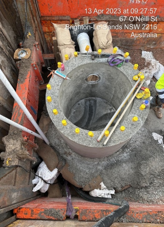 This project involved the installation of a DN 300mm PVC sewer main and three DN 1200 manholes, including two micro-tunnel bores at 80 meters each. The sewer main was installed in water-charged sandy ground at depths of up to five meters. The scope also included the installation of a temporary bypass and three connections. Additionally, 15 meters of the existing 225mm sewer main was replaced at the West Botany and President Avenue intersection during a 56-hour shutdown. This work included concrete encasement and bypassing of the main throughout the process. The project also involved raising five manholes during night shifts.